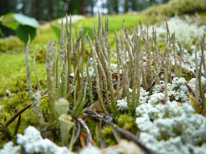 Granietblok begroeit met diverse mos soorten (bos museum Särna) : detail