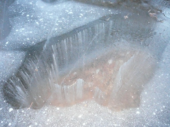 Bellen bevroren in het ijs (ca. 50 cm) boven een granieten kei