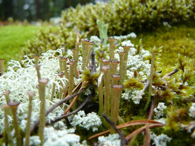 Granietblok begroeit met diverse mos soorten (bos museum Särna) : detail